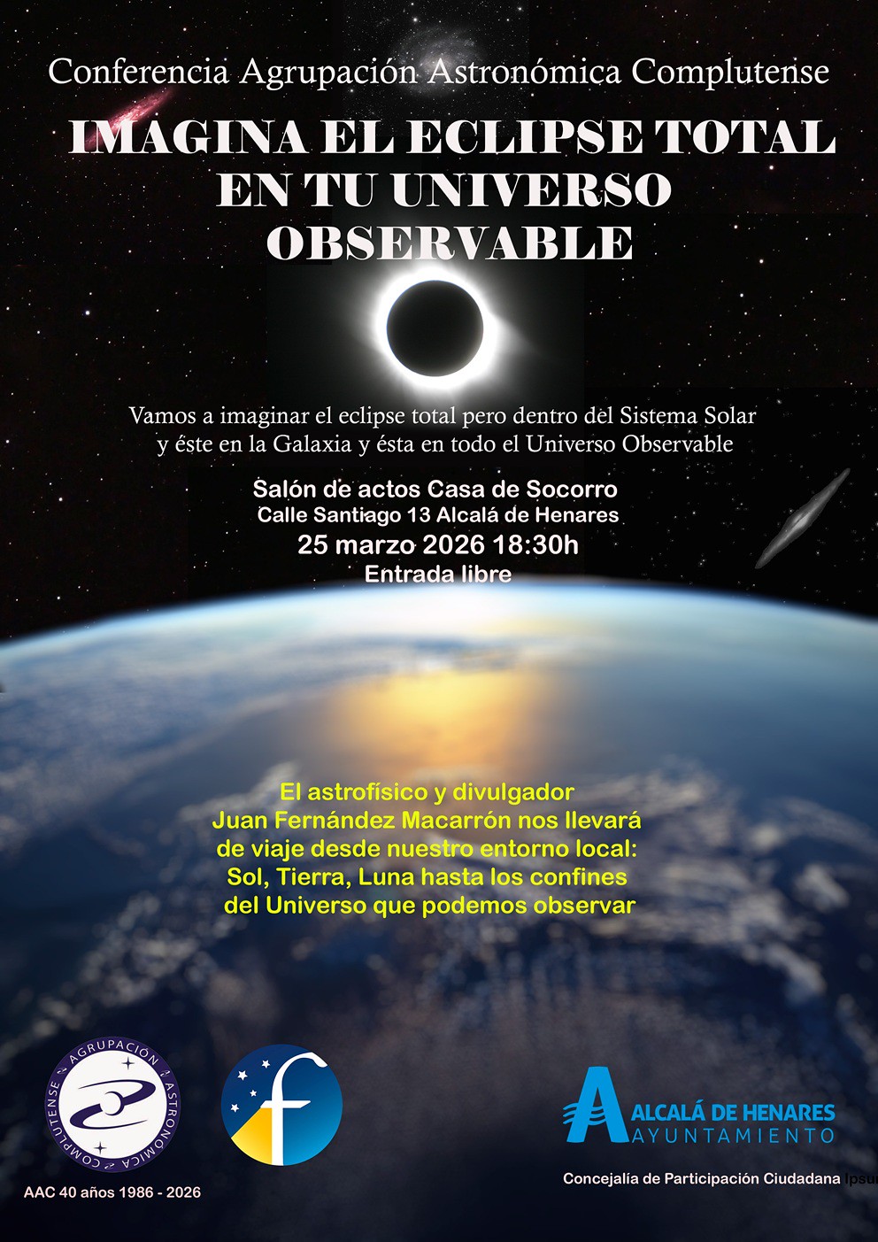 En el salón de actos de la Casa de Socorro de Alcalá de Henares el astrofísico y divulgador Juan Fernández Macarrón Impartió un charla muy interesante sobre las distancias astronómicas.